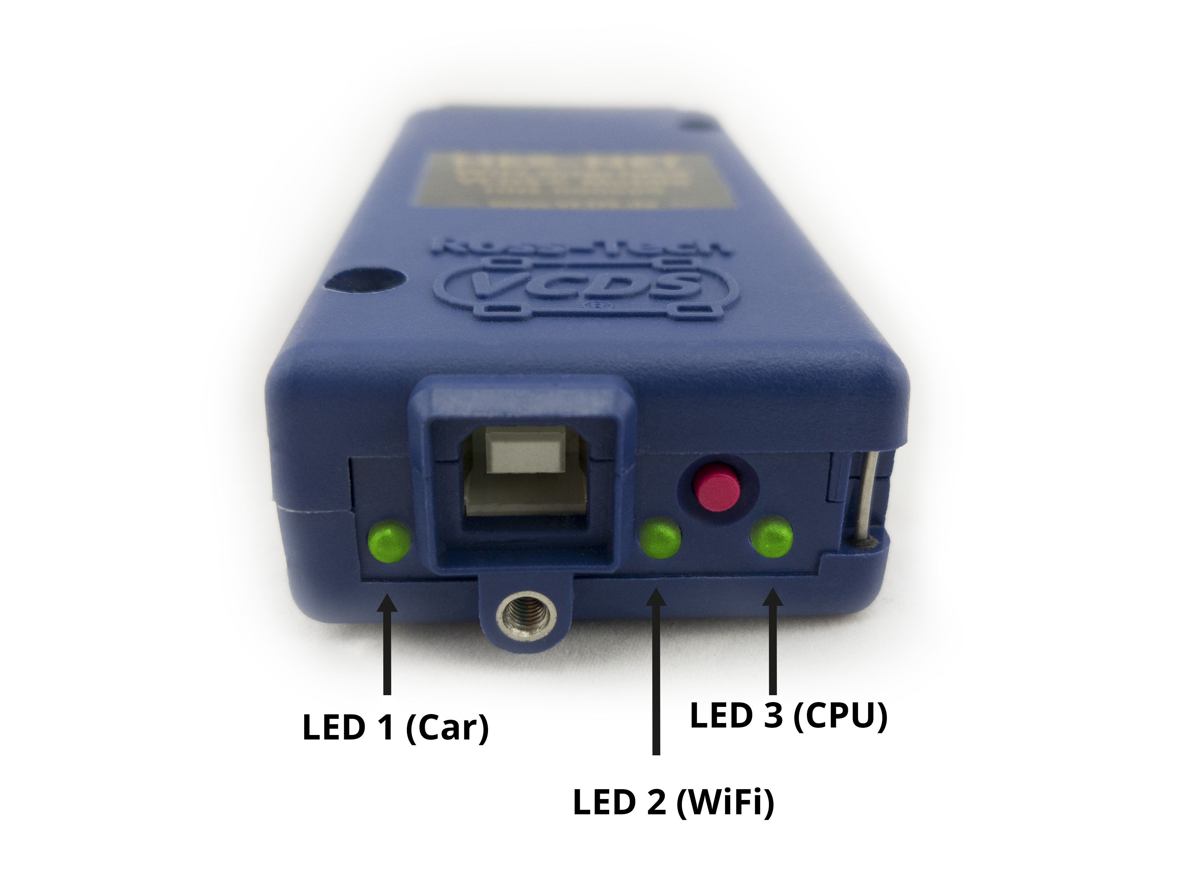 - Wenn alle drei LEDs gleichzeitig rot leuchten, dann arbeitet das Interface gerade und schreibt Daten in den Flash Speicher. Währenddessen sollte die Stromversorgung am Interface nicht unterbrochen werden. Dabei spielt es keine Rolle, ob es am Fahrzeug oder am USB-Kabel hängt. Sobald die drei Leuchten nicht mehr rot leuchten, kann das Interface wieder normal benutzt werden.